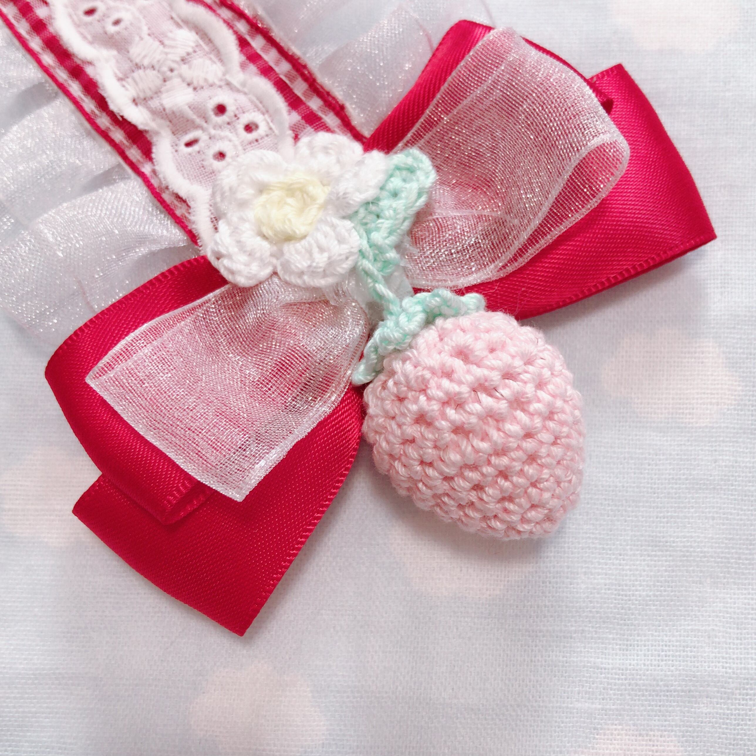 いちごのあみぐるみがゆらゆらゆれる、レースやリボンがたっぷりのヘッドドレスです♡