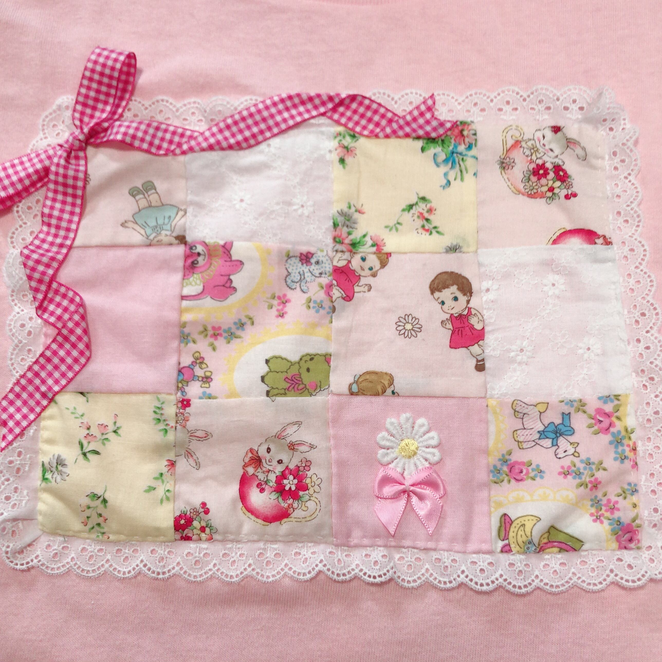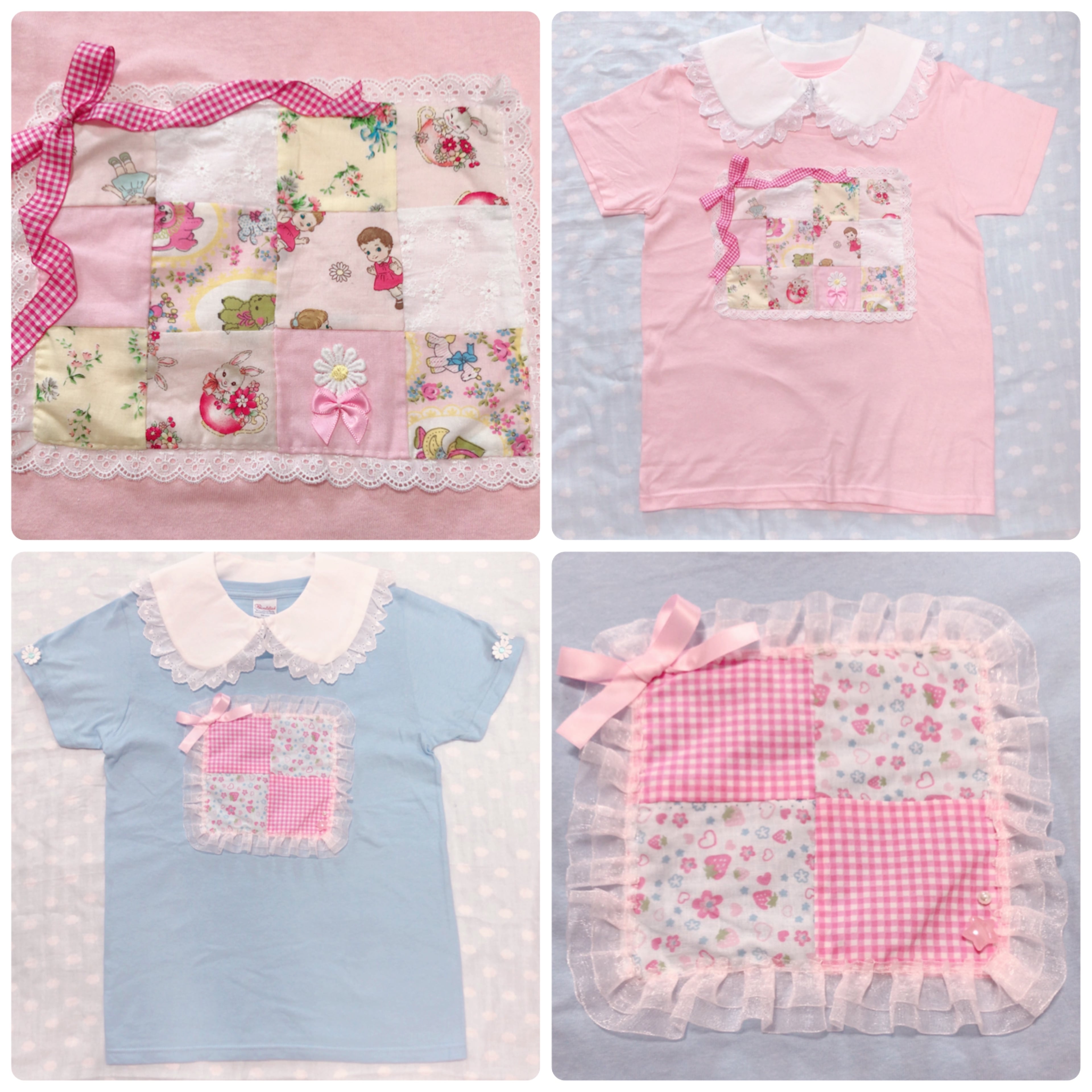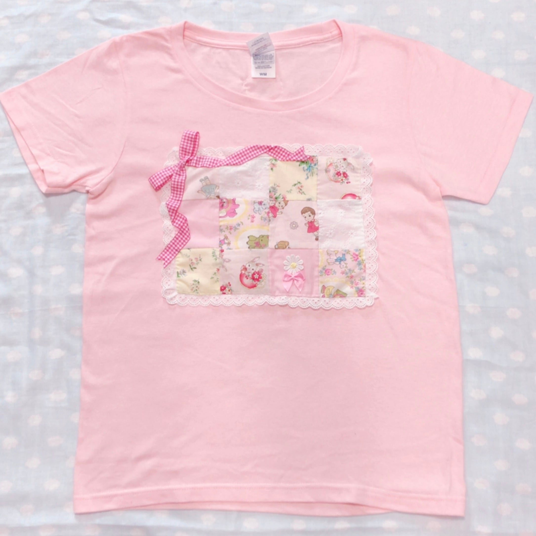 パッチワーク風のモチーフが目を引くリメイクTシャツです♡
