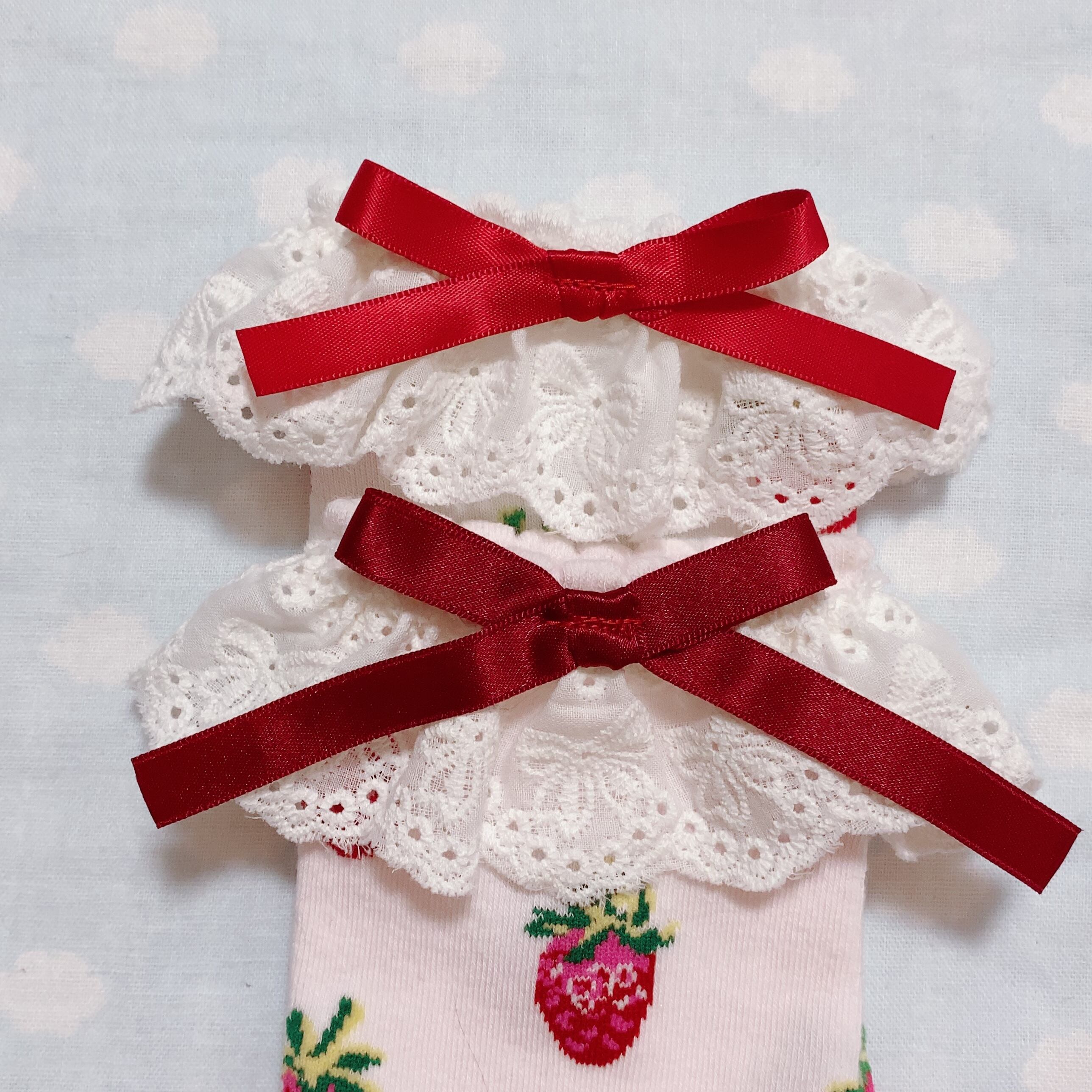 総柄にリボン柄のレースのトッピングがクリームのようなあまあまなソックスです✩