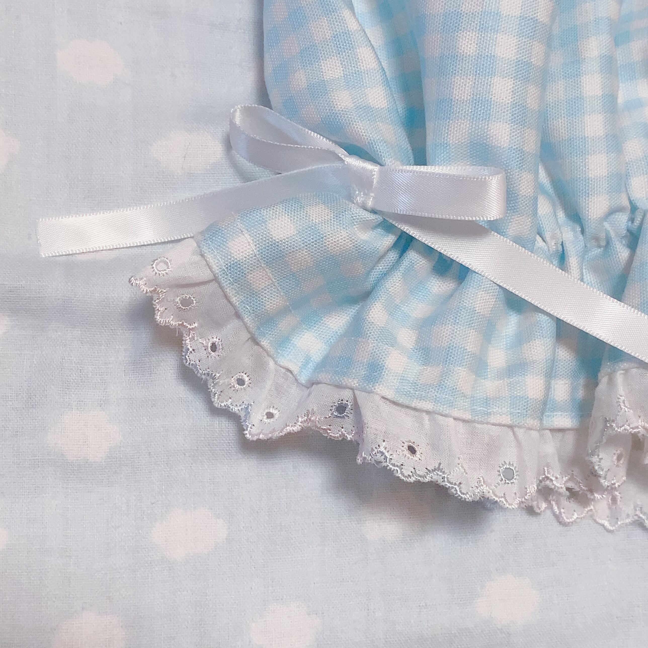 ピンク、水色とミント、ラベンダーで裾のレースが少し違います。