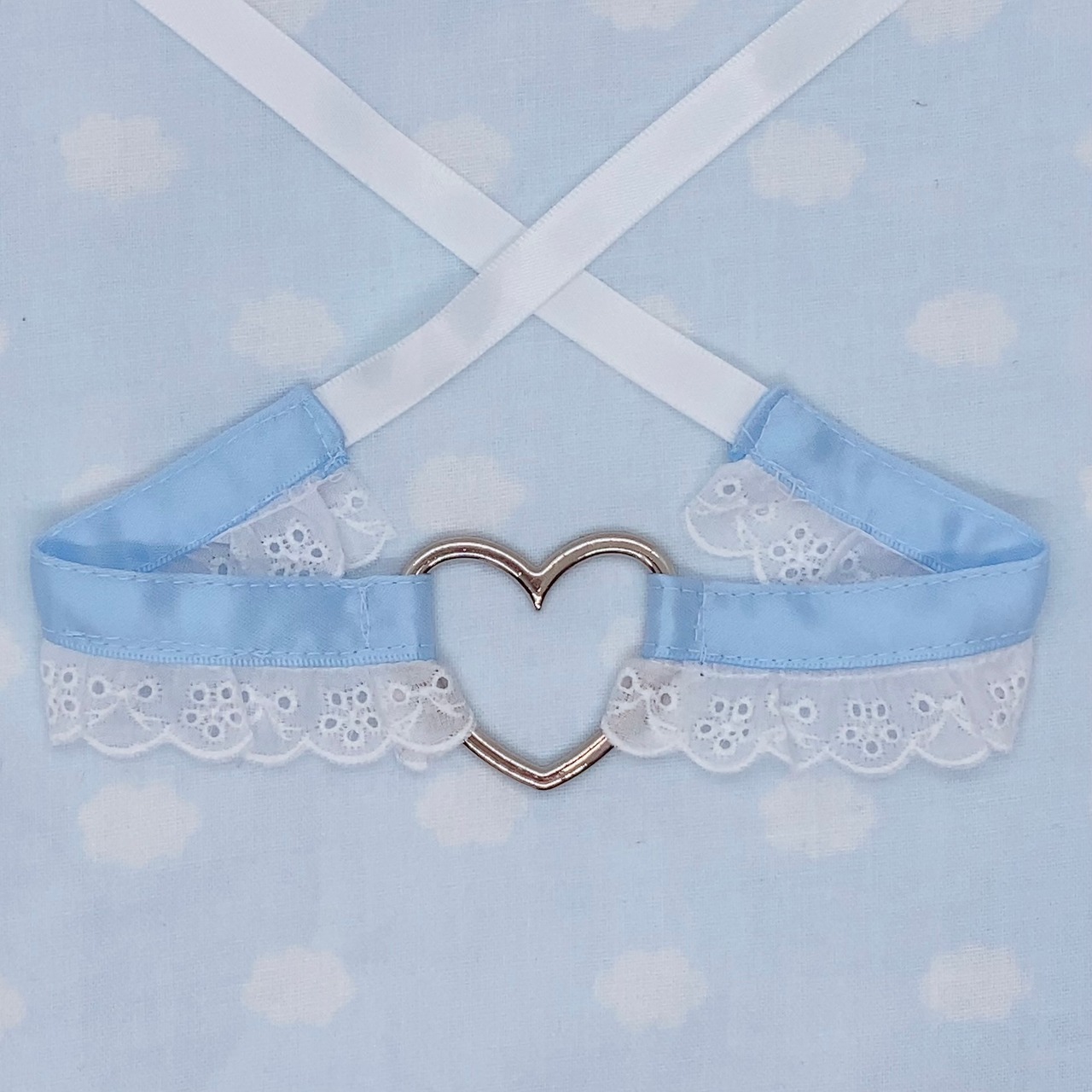 後ろでリボンを結ぶタイプなのでサイズ調整が可能です。
