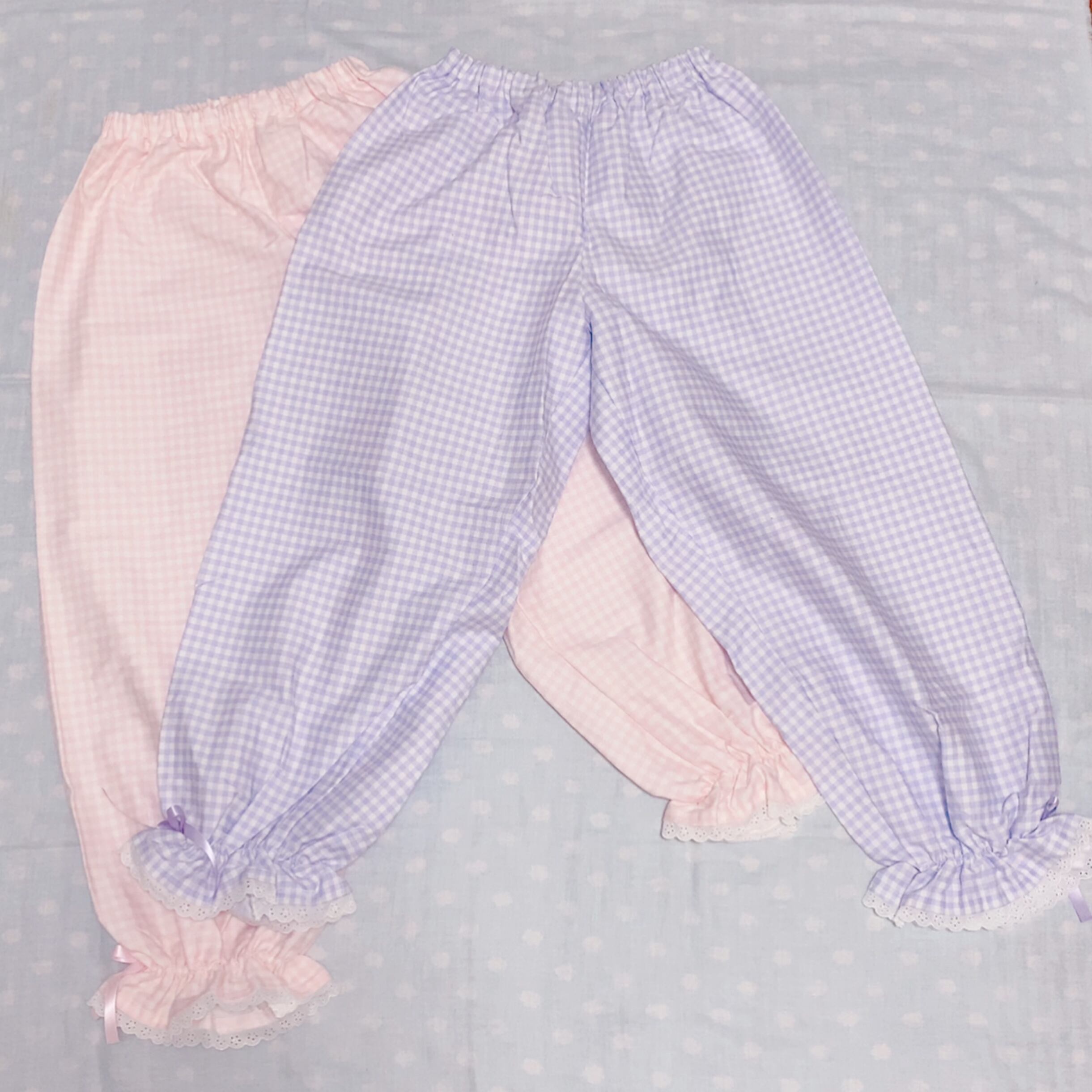 パステルチェックのパジャマズボン(ロングドロワーズ)