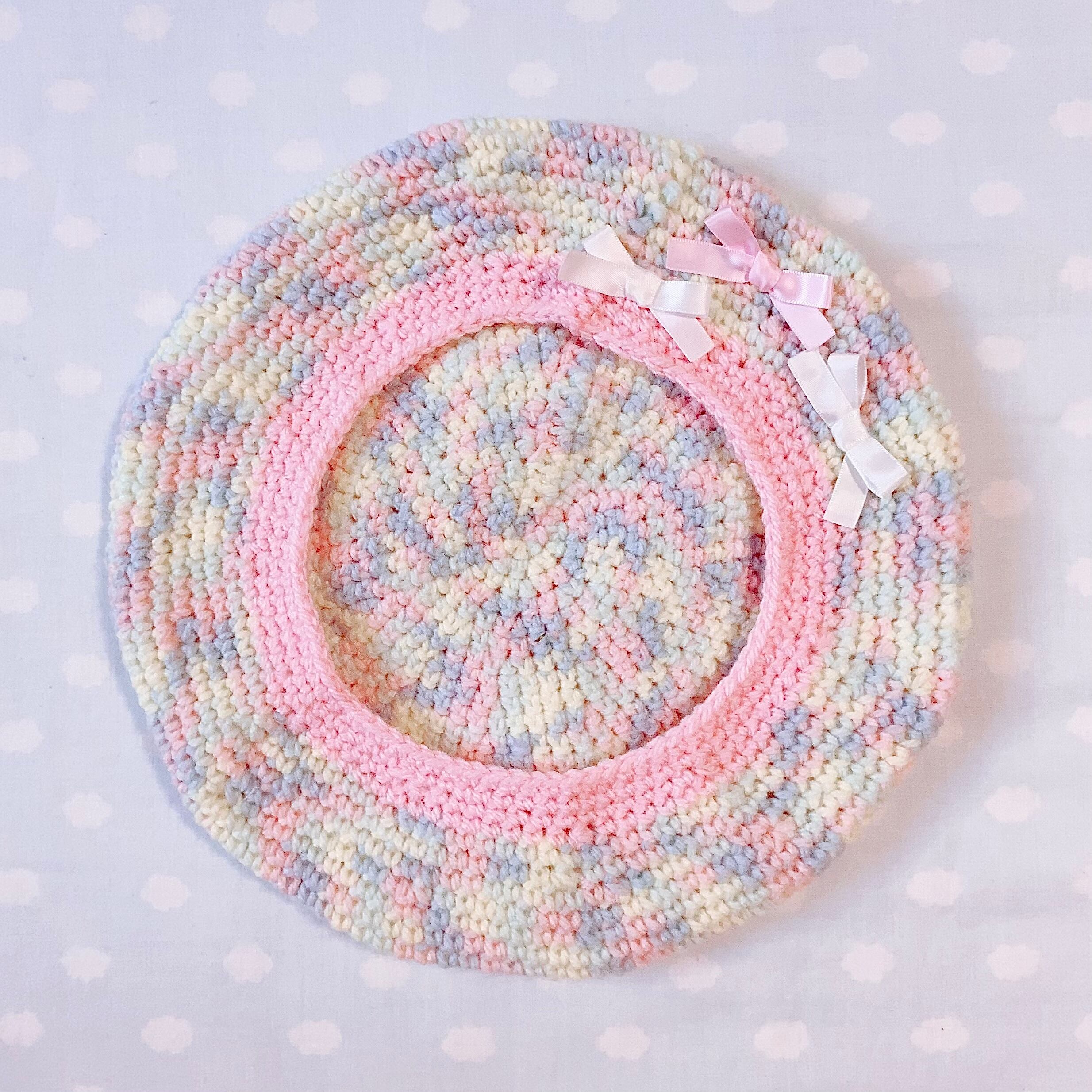 レースやリボン、パールなど女の子の好きなものでできたいちごちゃんのベレー帽です(*´ω`*)